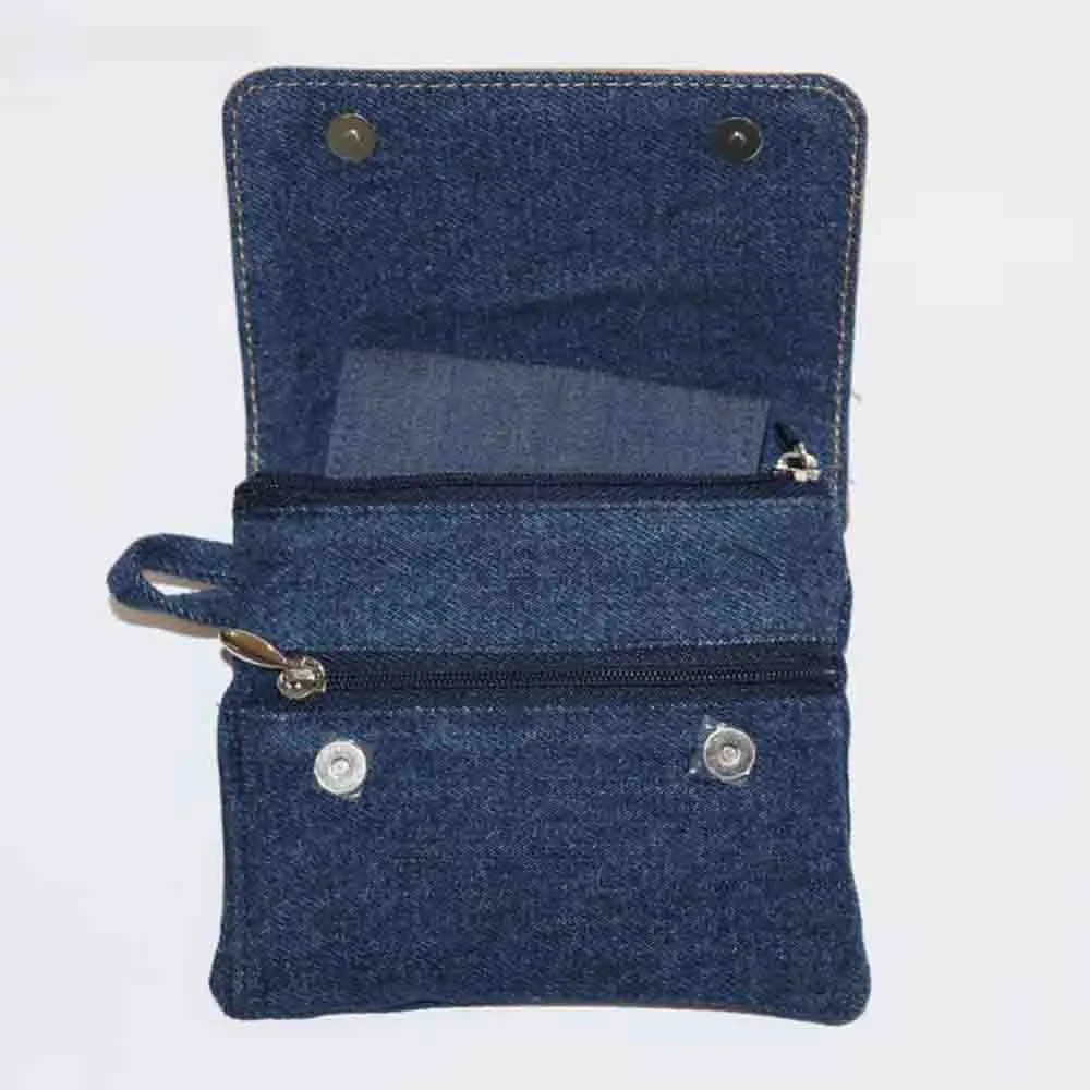 De set wordt geleverd in een stijlvol en praktisch opbergetui met twee ritsvakken en een drukknoopsluiting. Daarnaast bevat de set een apart naaldpuntenetui, dat in het grote etui opgeborgen kan worden. Het geheel is gemaakt van denim en leerpapier, wat zorgt voor een stoere en moderne uitstraling.
