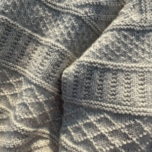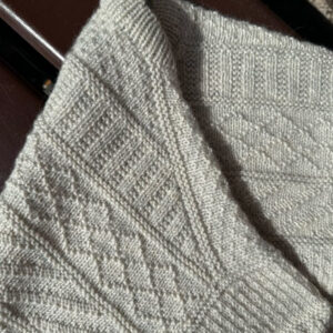 De Storm Sweater wordt van boven naar beneden gebreid in een structuurpatroon. Eerst wordt het achterpand van de pas gebreid en gevormd met verkorte toeren om de schouderhelling te creëren. Daarna worden steken opgenomen en gebreid voor beide schouders, die vervolgens worden samengevoegd tot het voorpand van de pas.
